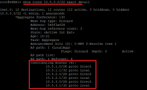 Additionally, for the aggregate route to be active, it requires contributing routes. Let’s take a look at those contributing routes.